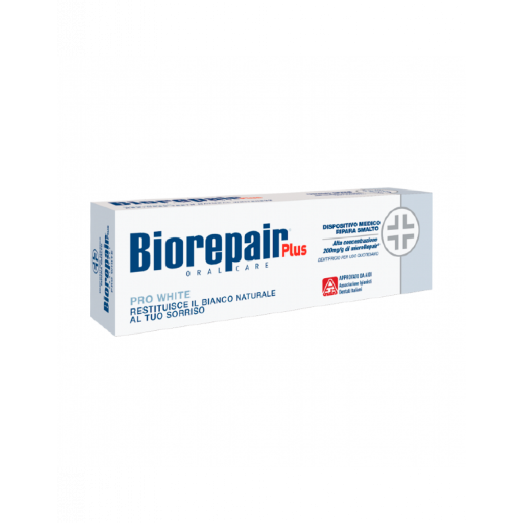 BIOREPAIR Plus Pro White 75 ml - професійна зубна паста BioRepair Plus "PRO White» дбайливо і абсолютно безпечно відбілює до природного білого кольору і додає блиск зубах. Також ідеально підтримує результат професійної процедури відбілювання.