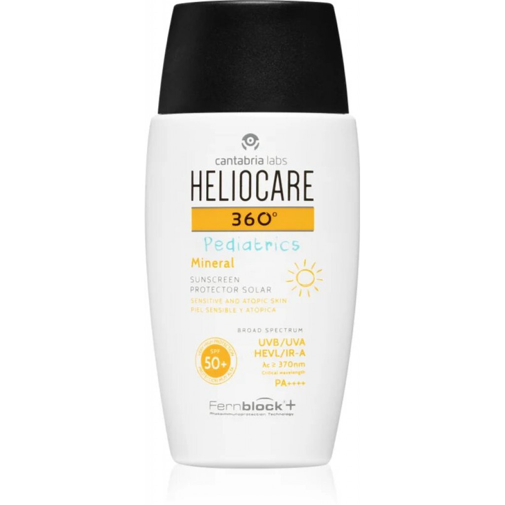 Cantabria Labs Heliocare 360° Pediatrics Mineral SPF 50 - дитячий сонцезахисний гель-крем. Підійде для догляду за чутливою та атопічною шкірою дитини. До його складу був введений 100% мінеральний фільтр, що має широкий спектр захисту від агресивної дії UVB, UVA-променів, видимого та інфрачервоного світла. Також формула цього косметичного продукту збагачена інноваційним фільтром природного походження Fernblock та іншими активними компонентами, що наділені інтенсивними антиоксидантними та відновними властивостями.