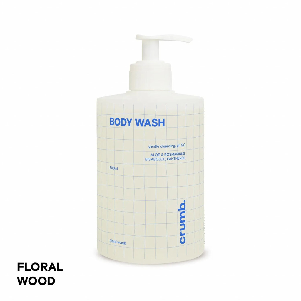 Crumb Body wash Floral Wood - гель для душу. Цей гель для тіла не тільки дбайливо і беспечно очищає шкіру, але і залишає її зволоженою, гладкою та м’якою на дотик. Надзвичайно шовковиста, біосумісна з фізіологічним pH шкіри мийна основа. Не порушує її захисний гідроліпідний бар’єр, а завдяки пантенолу й бісабололу має протизапальну, заспокійливу дію.