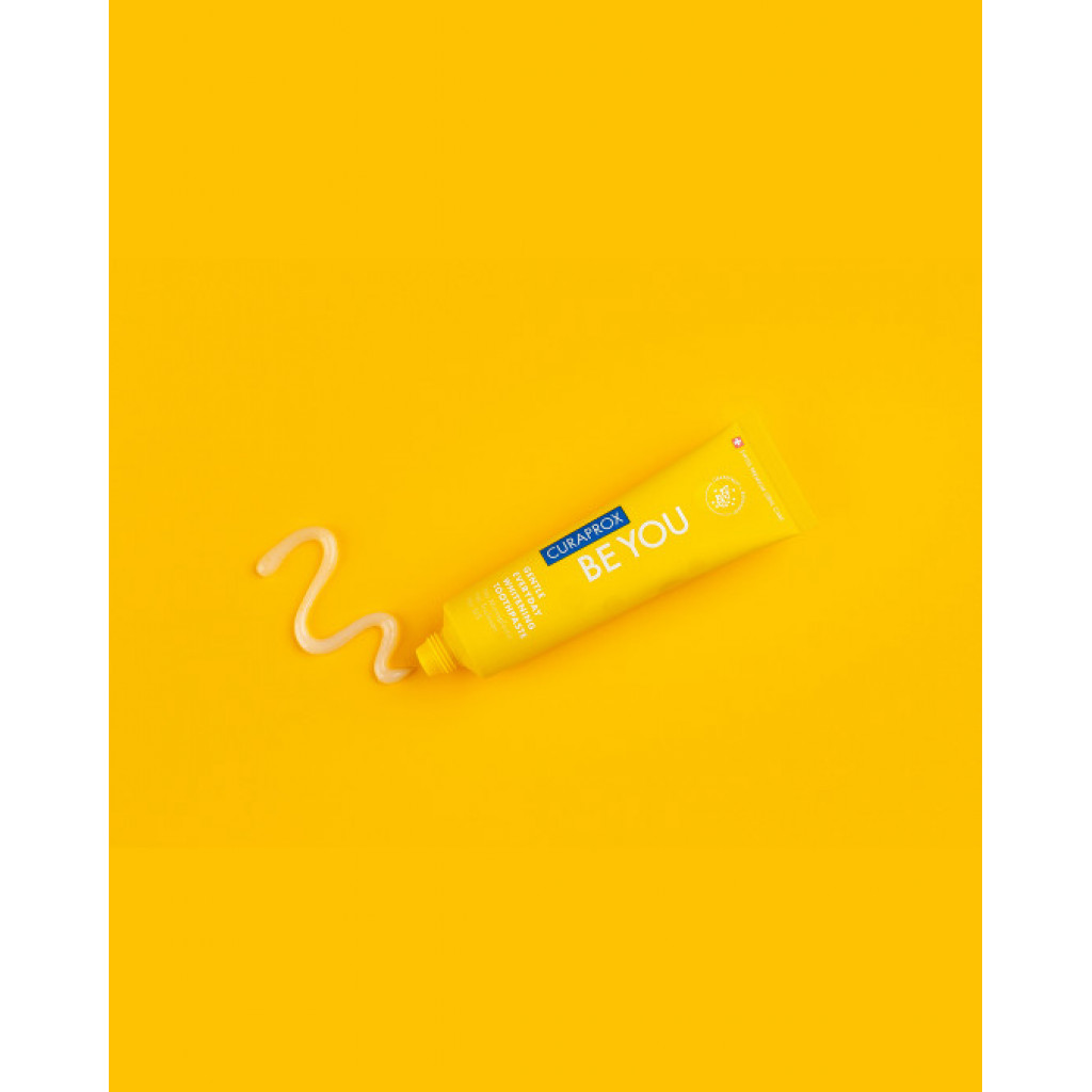 Відбілююча зубна паста Curaprox Be you з кольоровими мікрогранулами і незвичайними яскравими смаками ніжно відбілює зуби, видаляє плями, мінералізує пошкоджену емаль та створює заспокійливий ефект для ясен. Паста містить комплекс натуральних ферментів, що входять до складу слини (лактопероксидазної системи ферментів). Завдяки цьому паста підтримує місцевий імунітет порожнини рота, посилює антибактеріальну, ремінералізуючу, очищувальну дію слини. Не містить SLS (лаурилсульфат натрію), триклозан, парабени, штучні підсолоджувачі, барвники, загусники та консерванти. Завдяки відсутності SLS зубна паста CURAPROX не викликає подразнення слизової оболонки, мінімізує ризик виникнення афтозних виразок, не перешкоджає лікувальному ефекту хлоргексидину.