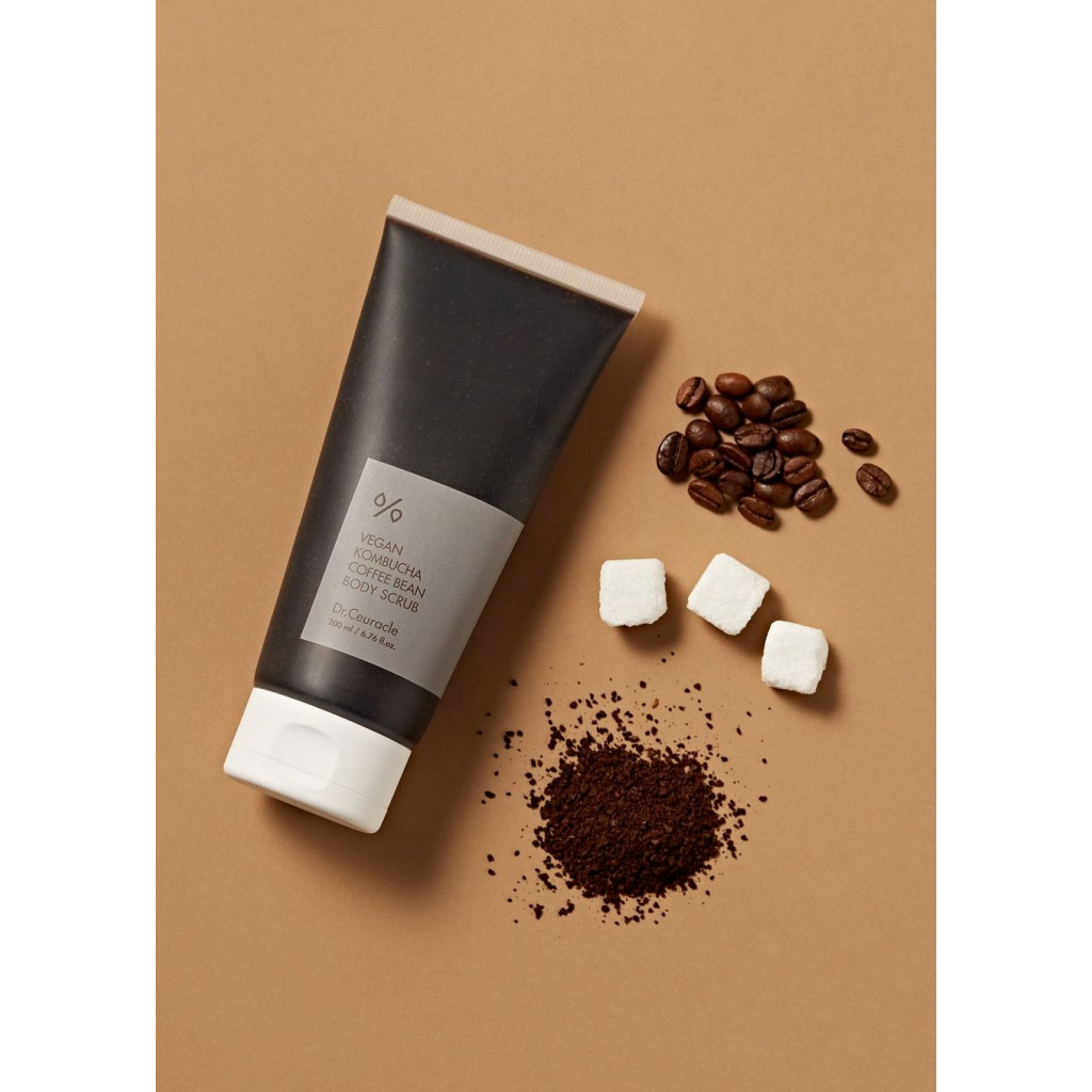 Dr.Ceuracle Веганський скраб для тіла з ферментованим чаєм комбуча та кавою - скраб на основі кави з додаванням ферментованого чаю комбуча допоможе зробити шкіру тіла зволоженою, гладенькою та пружною В результаті використання скрабу поліпшується кровообіг, виводяться токсини, зменшується запалення, і як додатковий бонус, вас огортає розкішний аромат кави! Дрібні частинки меленої кави діють як природній ексфоліатор, видаляючи відмерлі клітини з поверхні шкіри та посилюючи регенерацію, кофеїн стимулює відтік лімфи, зменшує прояви целюліту. Завдяки високому вмісту антиоксидантів кава попереджає запалення, передчасне старіння та збільшує синтез колагену. До складу скрабу також входить цукор – натуральний абразивний компонент, що підходить навіть для чутливої шкіри, оскільки його кристали мають негострі краї. Також, цукор є чудовим зволожувачем та натуральним джерелом гліколевої кислоти, яка руйнує зв’язки між ороговілими клітинами епідермісу та стимулює їх оновлення.ь Пробіотичні властивості комбучі (або чайного гриба) допомагають підтримувати фізіологічний слабокислий рівень pH шкіри, підвищують її імунітет для боротьби з токсинами та бактеріями із зовнішнього середовища. Екстракт лимонника підвищує пружність та еластичність, олія з насіння соняшника захищає від втрати вологи та відновлює ліпідний бар’єр.