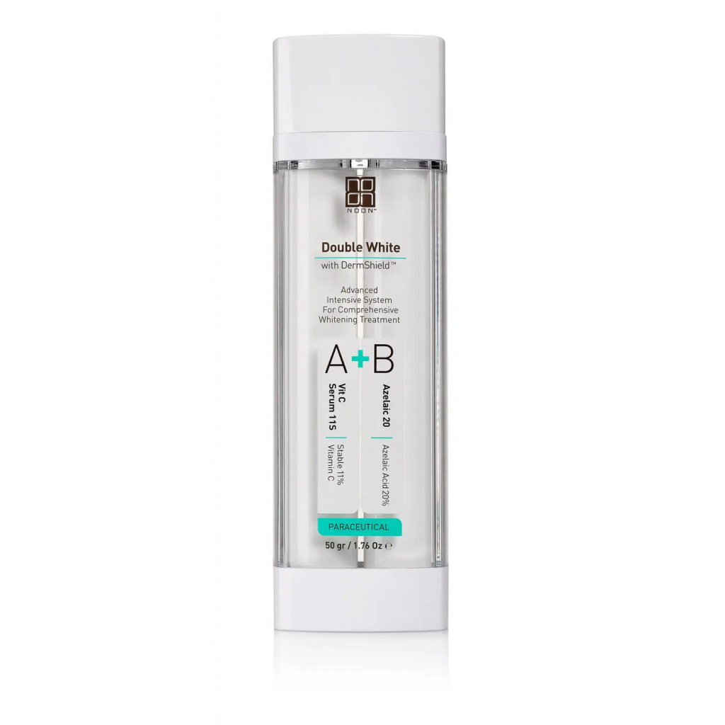 Noon Aestetics Double White 30 ml - містить два активні освітлювальні інгредієнти у винятково високій концентрації — вітаміну С та азелаїновій кислоті.