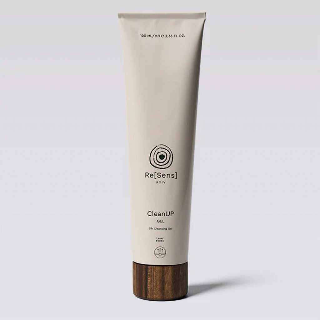 Re[Sens] CleanUp Gel - очищаючий гель. Завдяки унікальній формулі, розробленій з урахуванням потреб чутливої шкіри, гель дбайливо видаляє забруднення і макіяж, не порушує мікробіом та гідроліпідний баланс, ефективно очищує пори. Гідролізований поліпептид шовку надає шкірі шовковистості, гладкого та рівномірного тону. Полігідроксикислота зменшує вплив вільних радикалів та оксидативного стресу, а також ефективно очищує шкіру від забруднень металевого походження.
