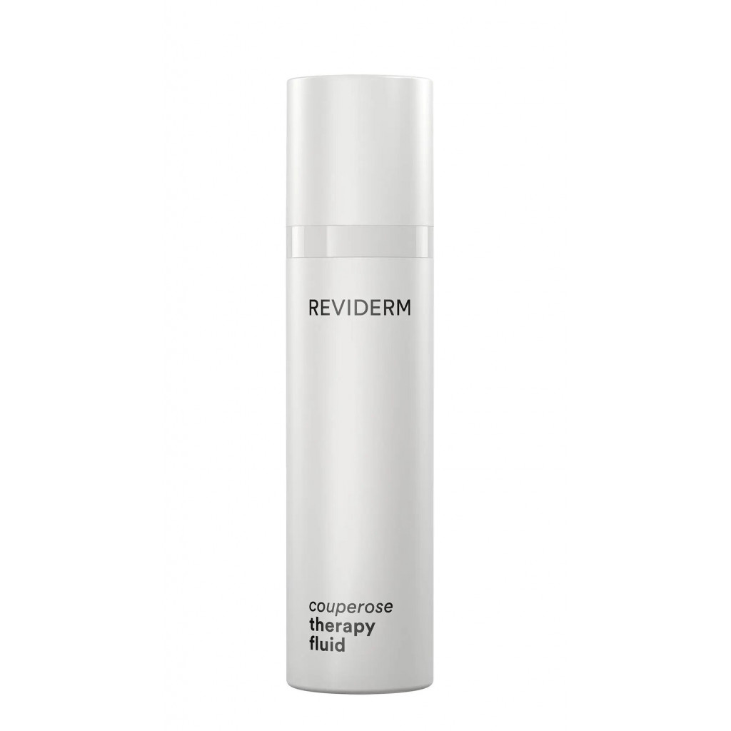 Reviderm couperose therapy fluid - легкий флюїд 24-годинної дії з ефектом зниження гіперактивності фактору росту судин. Підходить для нормальної та жирної типів шкіри з телеангіоектазом і як доповнення до медикаментозного лікування розацеа 1-3 ступені