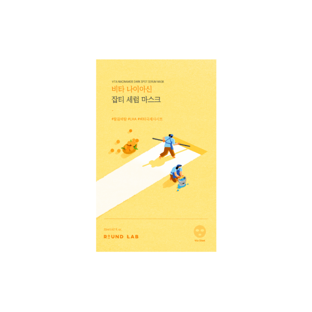 Round Lab Vita Niacinamide Dark Spot Serum Mask — освітлювальна тканинна маска з вітаміном C та ніацинамідом. Маска, розроблена для ефективної боротьби з пігментацією та темними плямами. Завдяки високій концентрації активних компонентів, таких як ніацинамід і транексамова кислота, маска активно освітлює пігментні плями, вирівнює тон шкіри та забезпечує інтенсивне зволоження. Комплекс із глутатіоном та вітаміном С надає шкірі сяйва та захищає її від вільних радикалів, забезпечуючи потужний антиоксидантний захист.