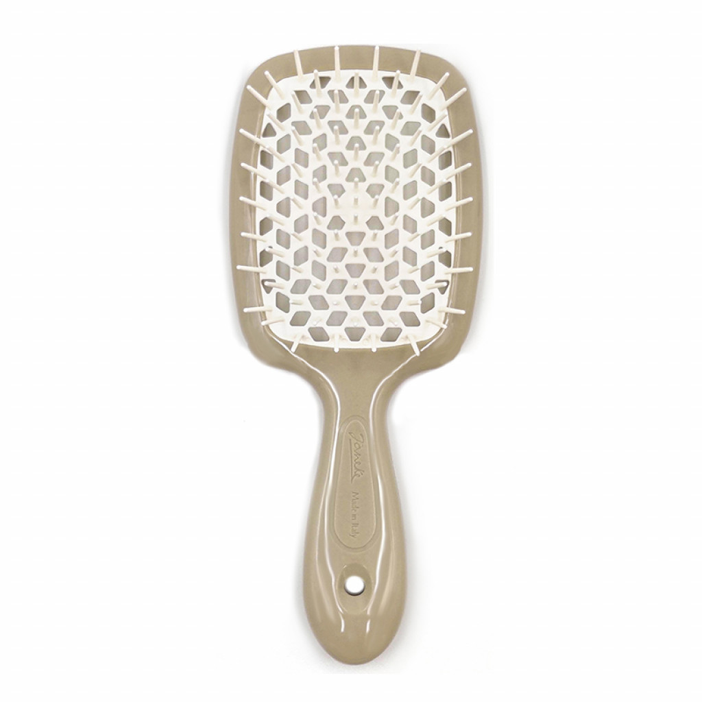 Щітка Janeke Superbrush 1830 легко і дбайливо розплутує волосся, не травмуючи їх структуру. Масажна база щітки має отвори у формі сот бджолиного вулика, які рівномірно розподіляють гаряче повітря фена, висушуючи волосся всього за кілька миттєвостей без будь-якої шкоди, не травмуючи шкіру голови, не електризуючи волосся. Легка, з ергономічною ручкою і м'якими щетинками Janeke Superbrush 1830 швидко і якісно впорається навіть з самим неслухняним волоссям. Підходить як для сухого, так і для мокрого волосся. Щітка Janeke Superbrush 1830 значно спростить укладання волосся і подарує їм здоров'я і красу.