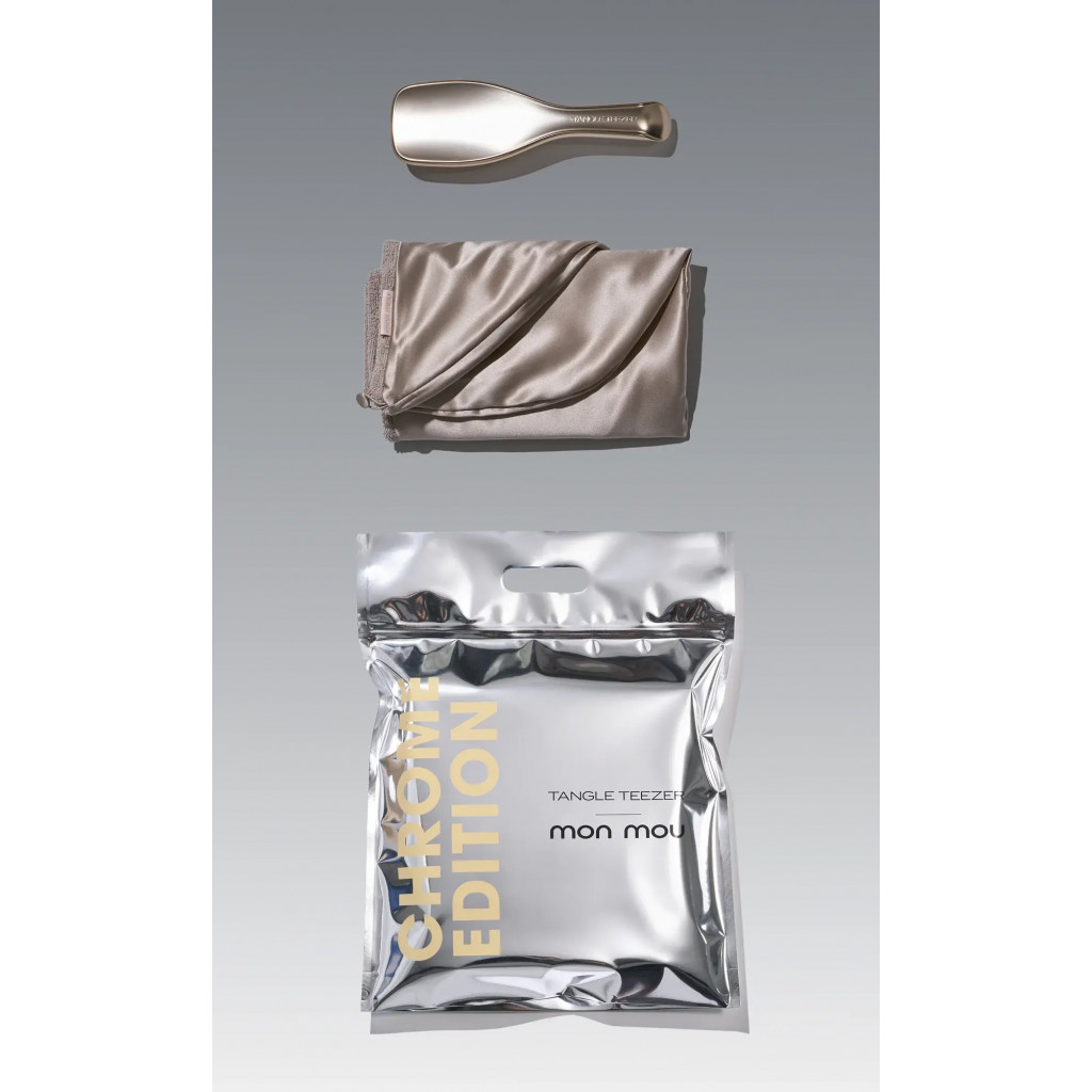 Tangle Teezer & MON MOU Лімітований набір “СHROME EDITION”. Елегантний набір, що об’єднує в собі культовий рушник-тюрбан MON MOU з натуральним шовком та легендарну розчіску Tangle Teezer у лімітованому футуристичному кольорі хрому.