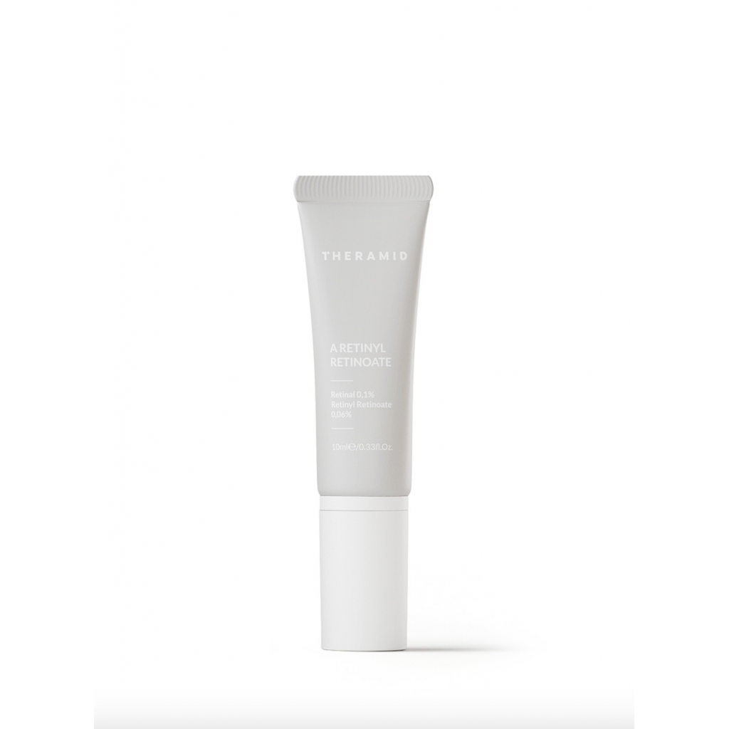 Theramid A-Retinoate. Антивікова сироватка містить власну запатентовану систему інкапсуляції для створення стабільної та високоефективної форми вітаміну А – ретинилретиноат. Поєднання 0,06% ретинілретиноату та 0,1% ретиналю підсилює ефект формули в боротьбі з першими ознаками старіння шкіри. Засіб стимулює вироблення колагену, зменшує появу тонких ліній і зморшок. Глибоко зволожує і живить шкіру. Покращує еластичність та пружність, зменшує запалення й акне.